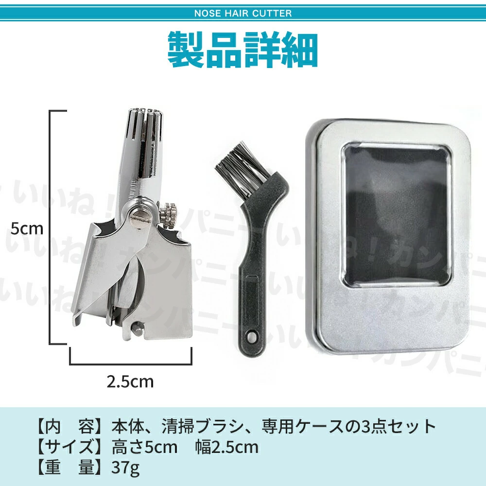 「電池不要・充電不要でいつでも使用可能」な商品をお探しなら、「いいねカンパニー 手動鼻毛カッター」がオススメですね。