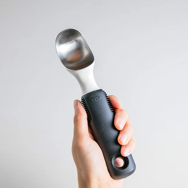 「硬めのアイスクリームやシャーベットでもきれいに丸くすくえる」商品をお探しなら、「OXO アイスクリームスクープ」がオススメですね。