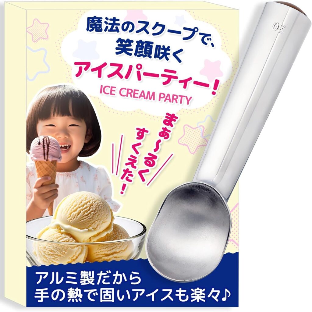 | FamBloom アイスクリームディッシャー | ★4.3(口コミ61件) | サイズ記載なし(スクープサイズ3種類) | アルミ製で熱伝導率が高く、硬いアイスもすくいやすい。持ちやすいグリップで子どもでも使いやすい | Amazon / ¥1,980〜 送料:無料 |