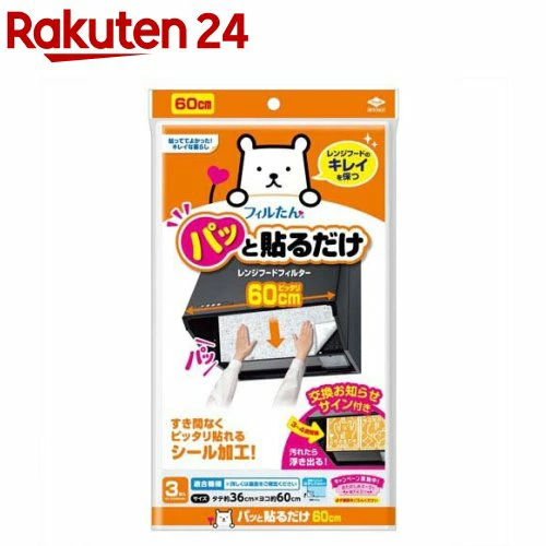 | 商品の特徴 | ・かぶせる「換気扇キャップ式フィルター」・飽和ポリエステル樹脂+天然ゴム+PP素材・25×31cm(フィルター)/25×34cm(フレーム)・3枚入り・取り付けが簡単で被せるだけ | ・「レンジフードフィルター」・60㎝にカットされているタイプ ・簡単に取り付けられる「かぶせるフィルター」 ・グラフチェック柄・シマエナガの可愛いデザインも | ・「換気扇・通気口フィルター」・サイズ:約30×30cm・材質:ポリエチレン(フィルター)、ナイロン(取付けテープ)・2枚入り+取付けテープ8片・テープで取り付けるタイプ |
