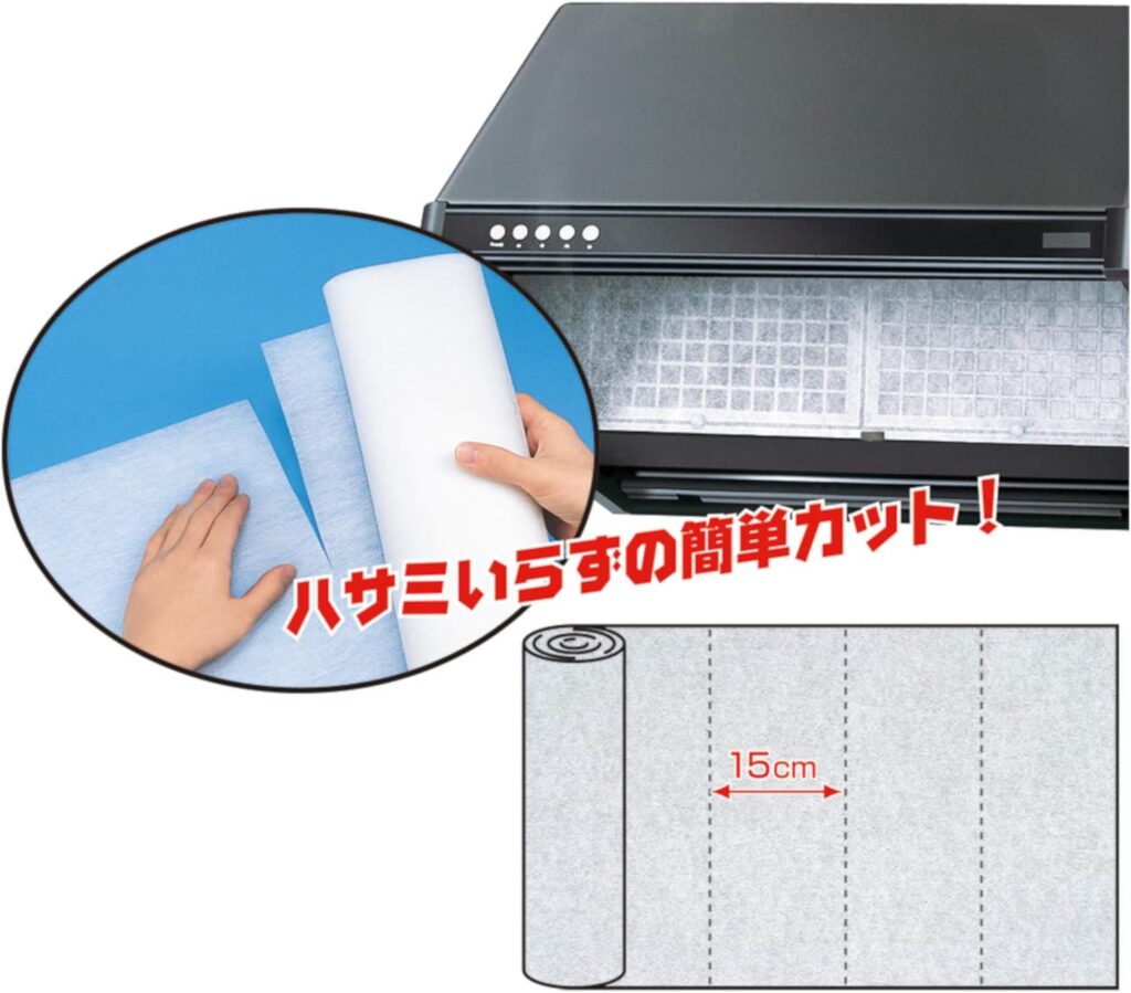 「取り付けがしやすい、折り目のないロール巻きのカットレンジフードフィルター」をお探しなら、「アルファミック レンジフードフィルター」がオススメですね。