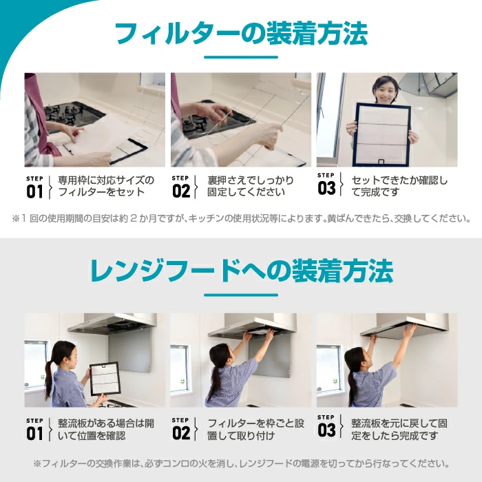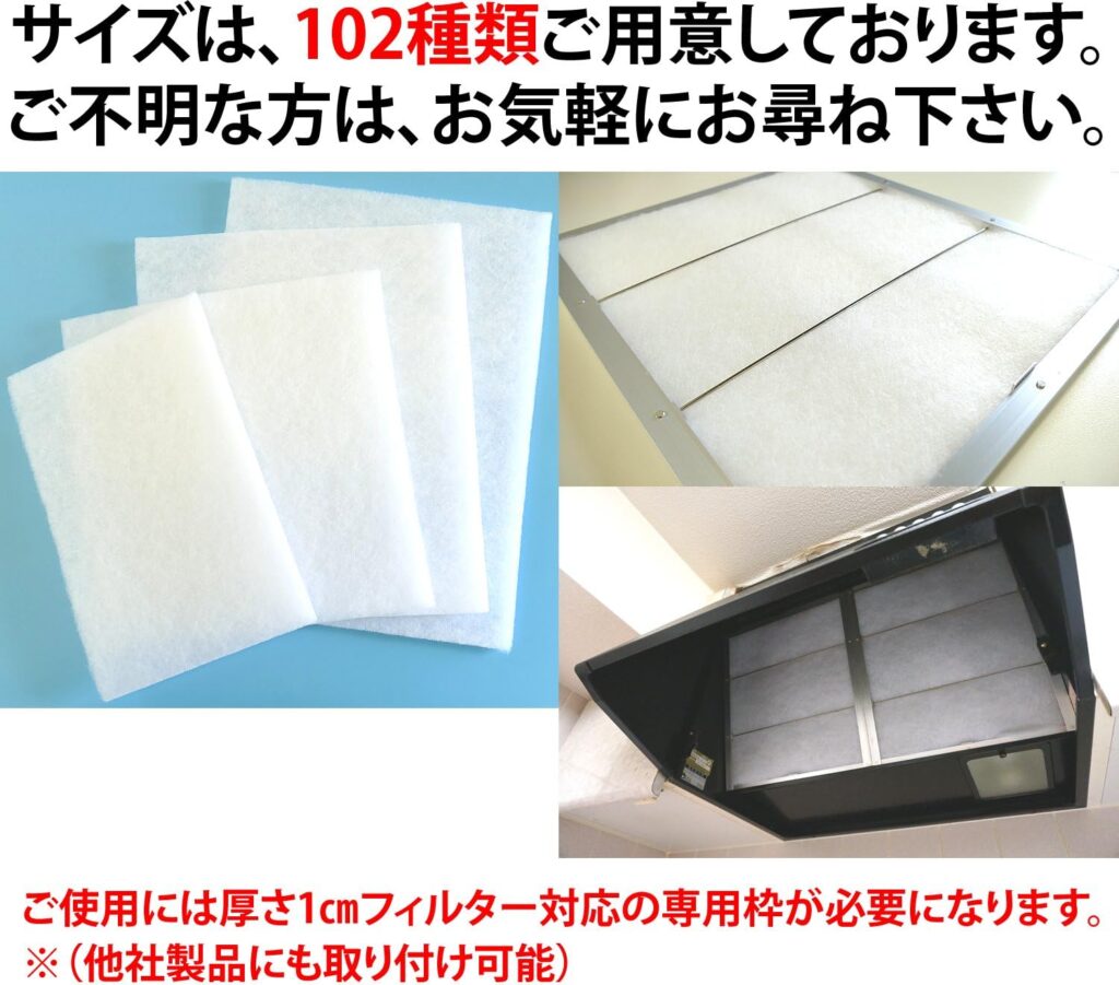 キッチンやお風呂用など、お使いの換気扇に合わせて使いやすいフィルターを選ぶことができそうです!