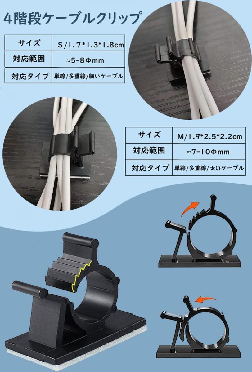 | MAVEEK ケーブルクリップ | ★4.38(口コミ26件) | S:1.7×1.3×1.8mmM:2.5×1.9×2.2mm | ・4段階調節可能・太さに合わせて調整OK・粘着テープ付き・30個セット | 楽天市場価格:※記載なし(ランキング上位)送料:無料 |