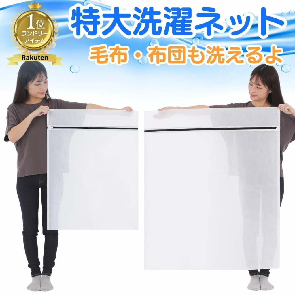 「全開ファスナー使用で布団、毛布もラクラク入る大判サイズの洗濯ネット」をお探しなら、「特大洗濯ネット」がオススメですね。