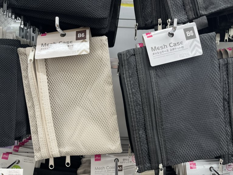 100均ショップのメッシュポーチは、なかなか使えそうなものが揃っていましたね。