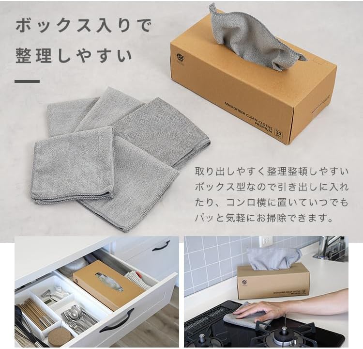 ティッシュボックス式の、マイクロファイバークロスとしては大きめサイズ!