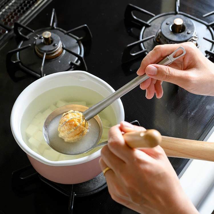 - 泡立て器とスプーンの良いとこどりで、潰す、混ぜる、盛り付けにも