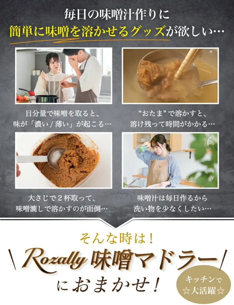 Rozally 味噌マドラー | ★4.89(331件) | 全長約21cm | 大さじ1・2を計量、1~3人分対応、食洗機可、1年保証&全額返金保証 | 楽天市場/送料無料 |