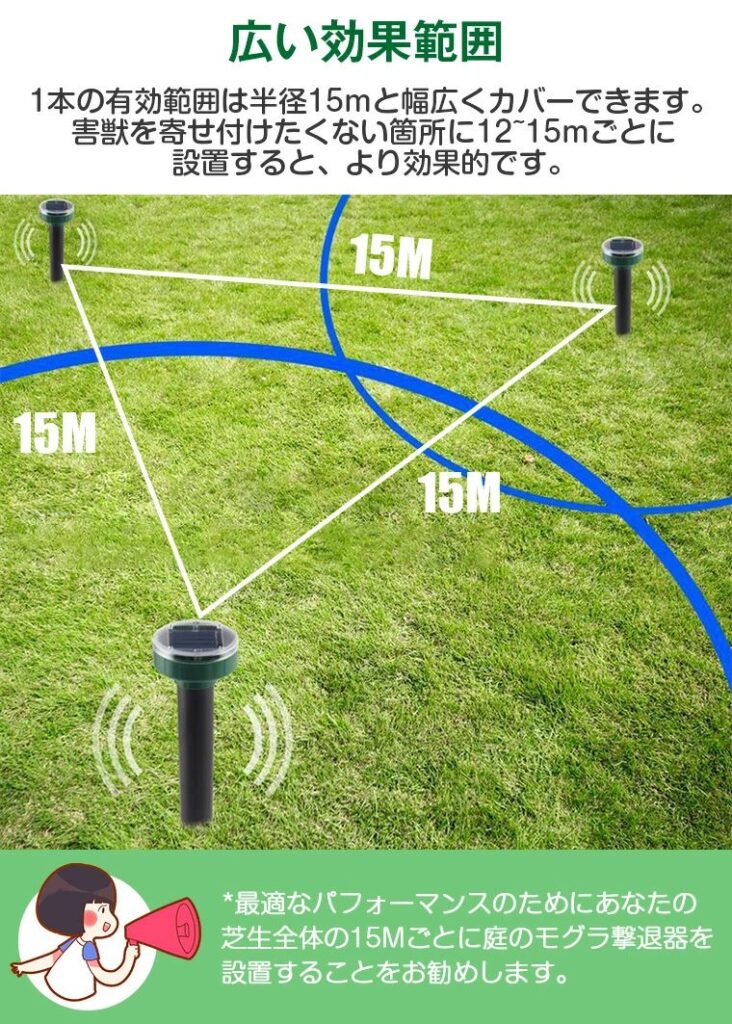 ・超音波+振動で撃退・ソーラー充電式・無毒・無臭・防水・4本/8本/12本セットあり楽天市場
