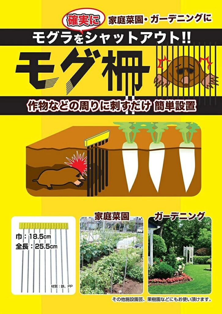 • モグラが嫌がる特殊な臭いを発するため、庭に寄せ付けない効果がある。
