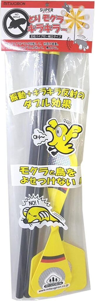 備考・忌避剤は臭いで寄せ付けない仕様・風車は飾るだけで手軽・風車はカラフルで見た目も楽しめる・モグラ退治用は基本なし
