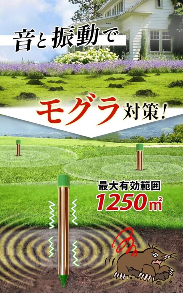 楽天・Amazonでは振動・音波式や大容量粒剤など科学的手法の商品もあり、モグラ根本対策に期待が持てます。