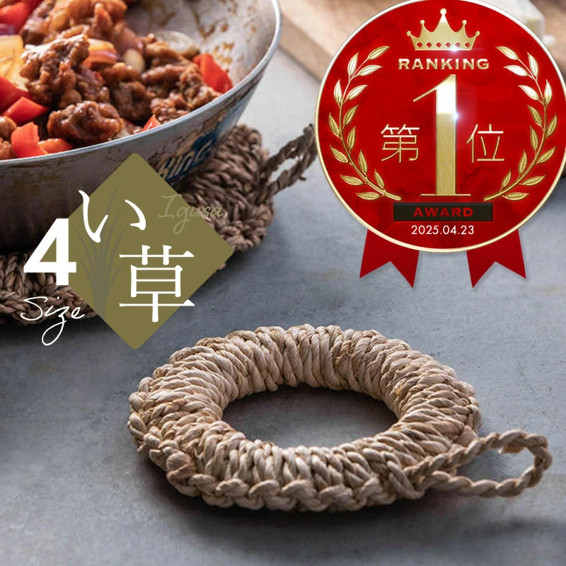 「自然素材のい草製鍋敷き」をお探しなら、「ハッピースペース い草鍋敷き」がオススメですね。