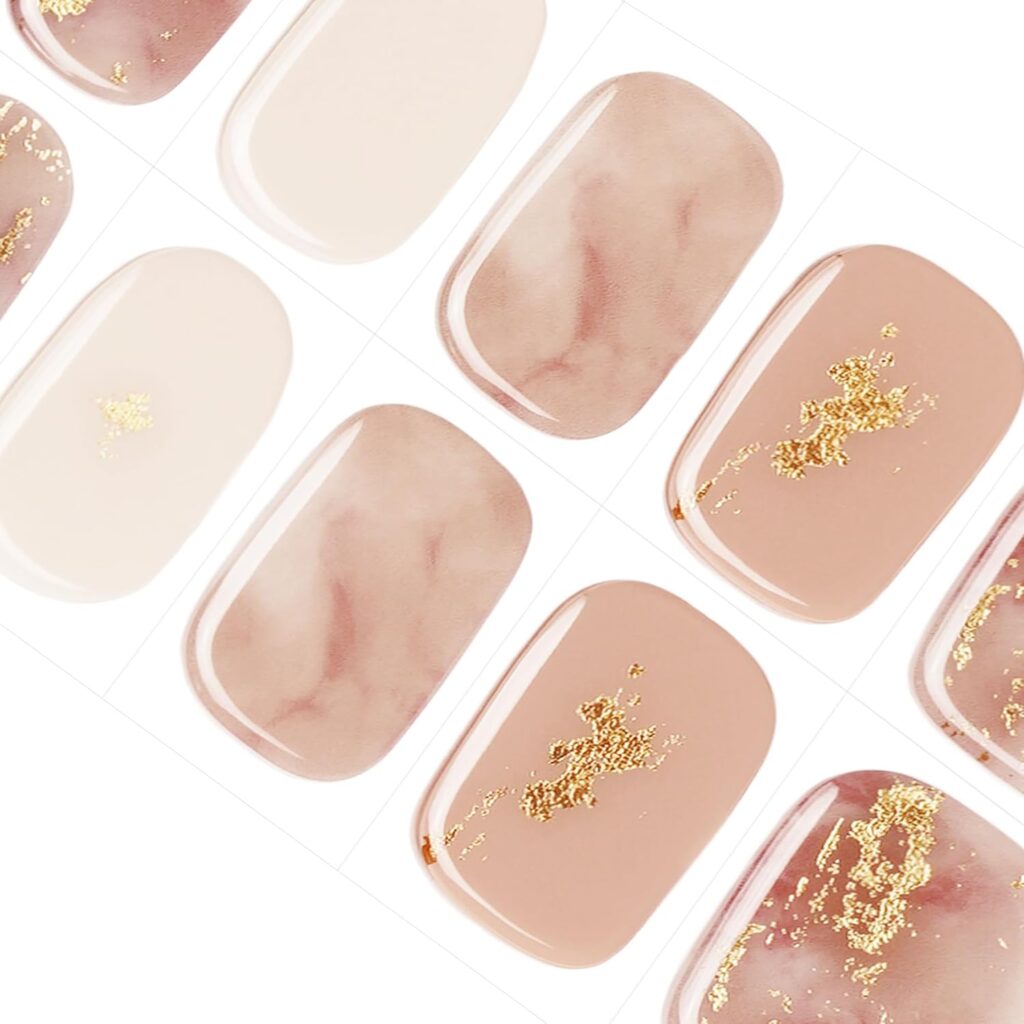 「透け感のあるベースに、大理石柄と金箔飾りをあしらったジェルネイルシール」をお探しなら、「DANNI&TONI ジェルネイルシール」がオススメですね。