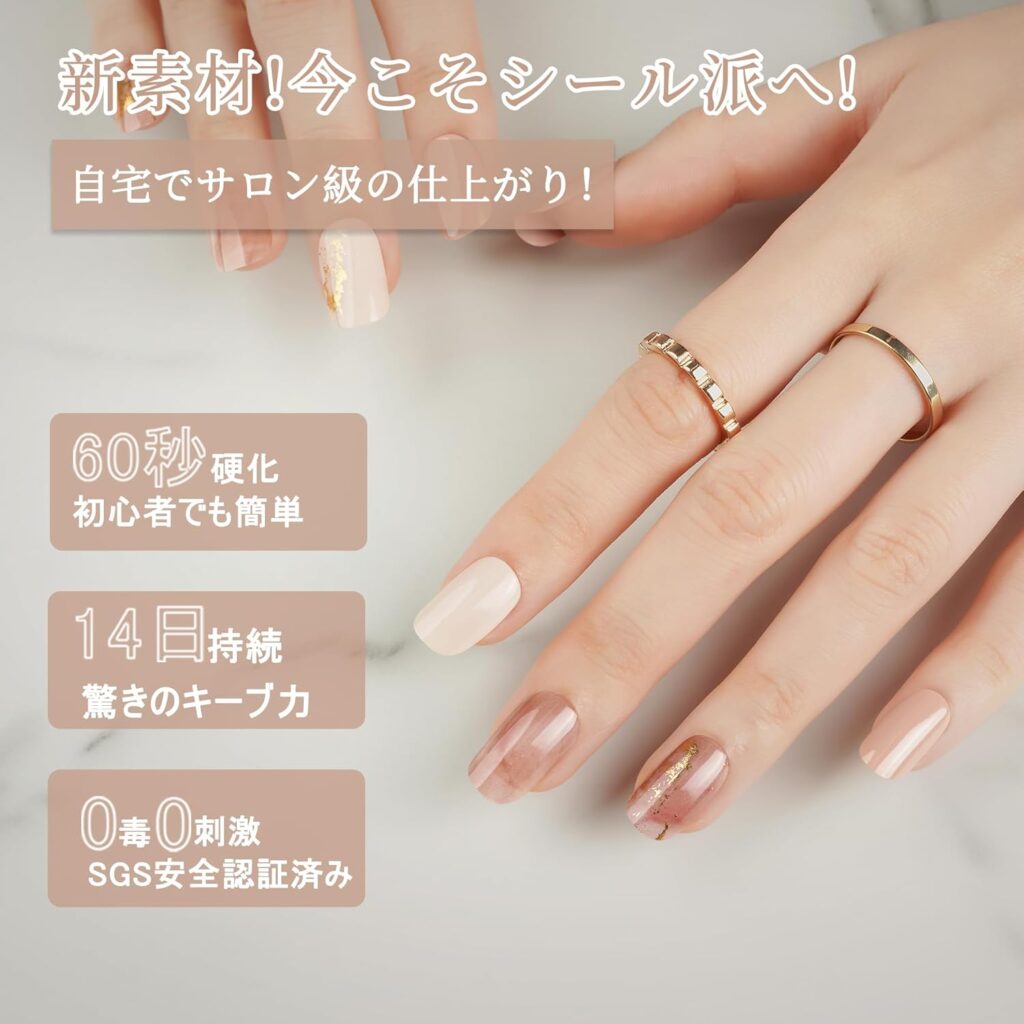 貼って硬化する光硬化型UVジェルネイルシールで、手軽に本格的なネイルが楽しめて便利ですね。