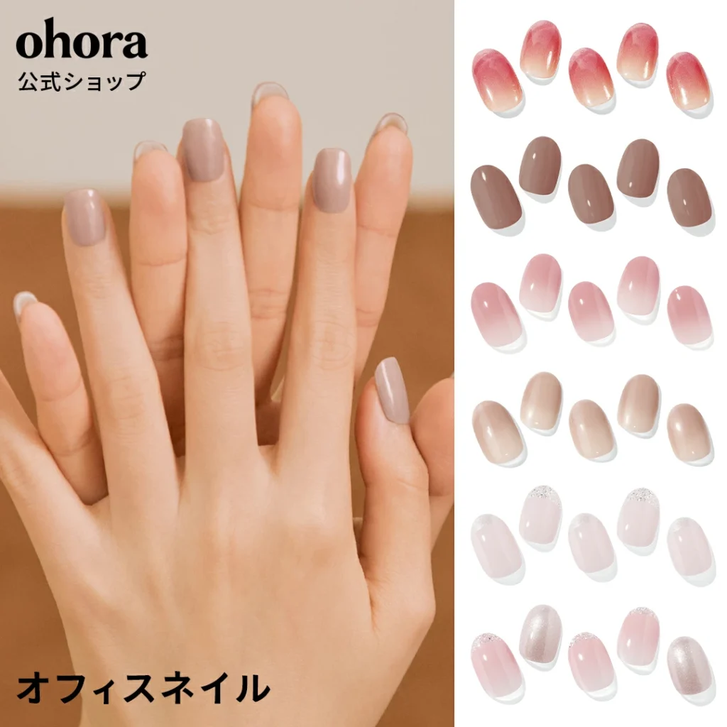 「サロンクオリティをおうちで楽しめるネイルシール」をお探しなら、「ohora オフィスネイル」がオススメですね。