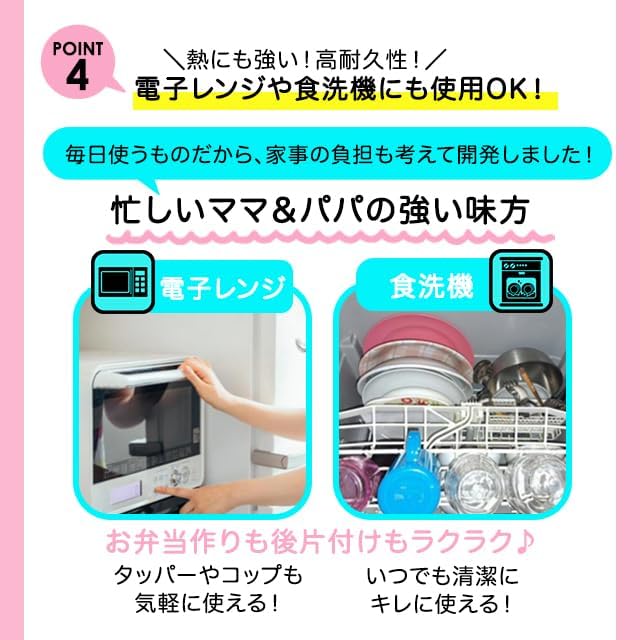 - 高温にも強いので電子レンジや食洗器などの使用も可能です。