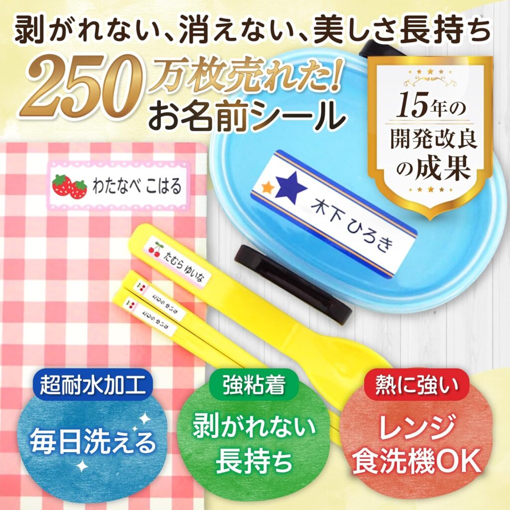 「15年の研究に渡る独自のシール素材とラミネート加工で耐水性は抜群な名前シール」をお探しなら、「生活グッズラボ お名前シール」がオススメですね。