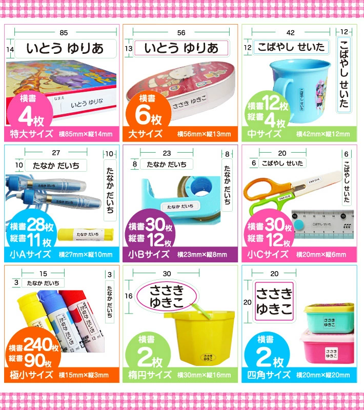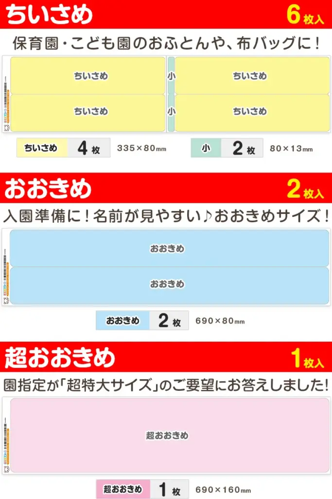 「大きさは3タイプで、超特大サイズにも対応もある名前シール」をお探しなら、「おなまえシート (お布団タイプ)」がオススメですね。