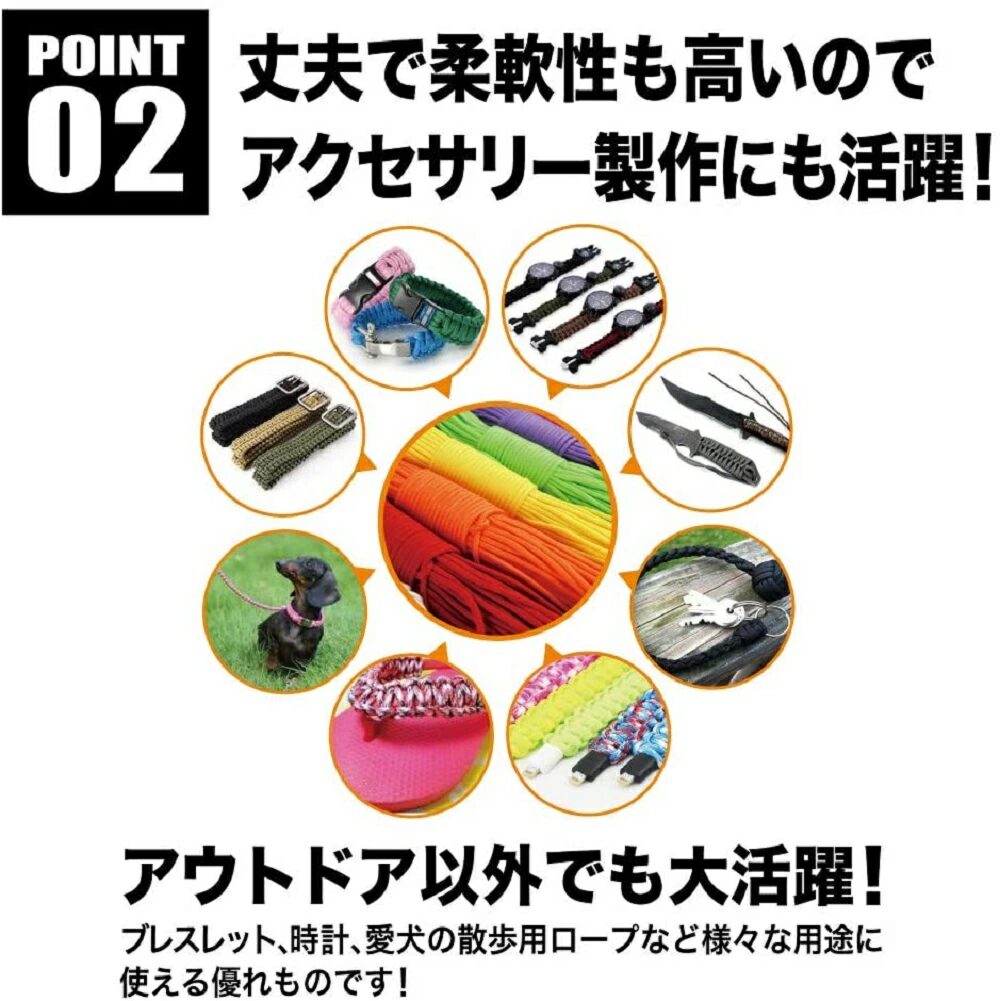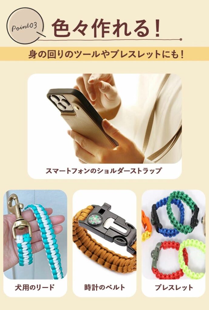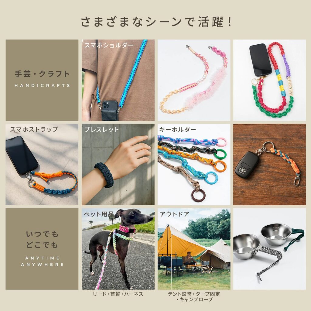 - 耐久性と柔軟性があり、アウトドアもアクセサリー作りも楽しめます。