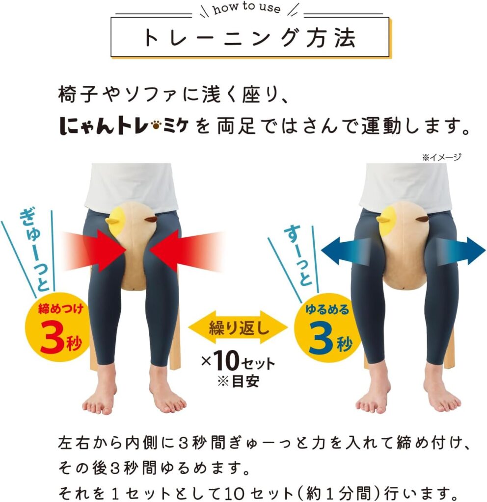 - 太ももに挟むだけで内転筋・骨盤底筋を効率的に鍛えられる猫型トレーニンググッズ。