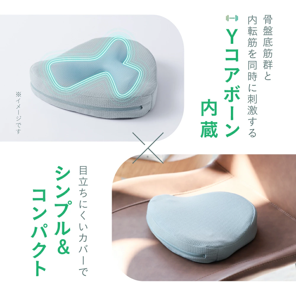 - Y字形芯材で骨盤底筋に直接アプローチし、低反発ウレタンでお尻にフィットする座り心地です。