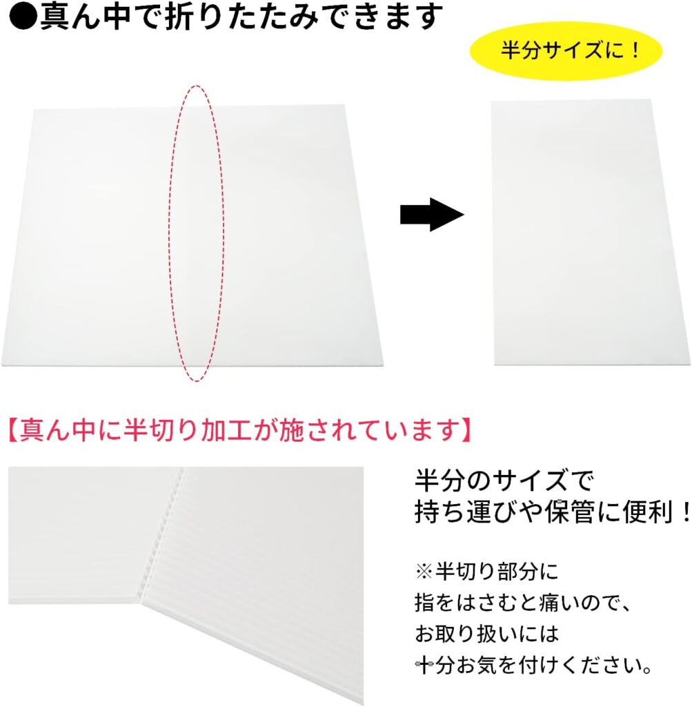 「2つ折りできるコンパクトサイズなプラダン」をお探しなら、「プラダンのヤマコー プラダン 折りたたみ」がオススメですね。