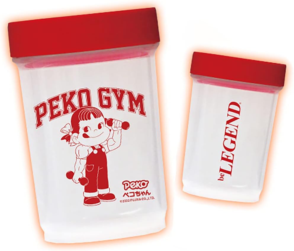 「筋肉質なペコちゃんがデザインされたシェイカー」をお探しなら、「ビーレジェンド ペコちゃん ダンベルシェイカー」がオススメですね。