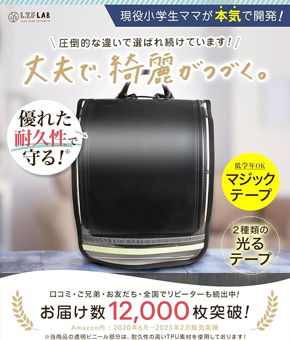 「耐久性も安全性も備えたランドセルカバー」をお探しなら、「L.Y.F LAB 丈夫で綺麗が続くランドセルカバー」がオススメですね。
