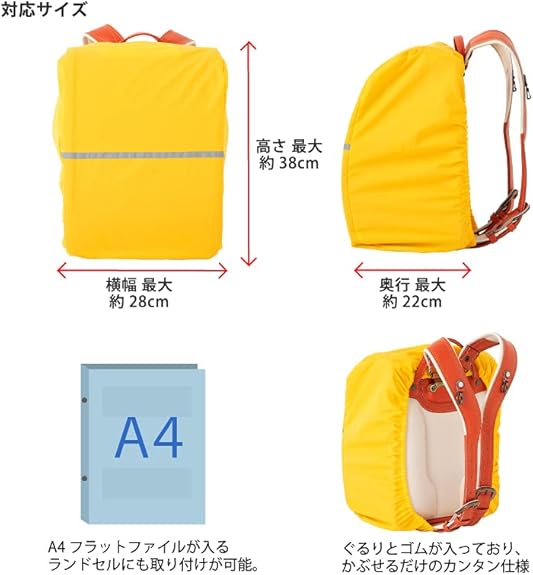 | 備考 | ・素材:ポリエステル・星柄、透明タイプ、ポケット付きなど種類豊富 | ・「ランドセルカバー」名の商品は廃盤・代用品で対応可能 | ・リュックやランドセルに兼用できる・花柄、星柄などデザインタイプも登場実績あり |