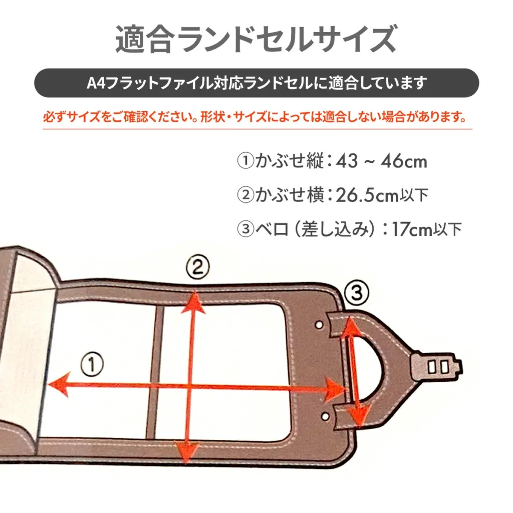 - ランドセルのかぶせ(フタ部分)にこのカバーを取り付けるだけで装着完了。