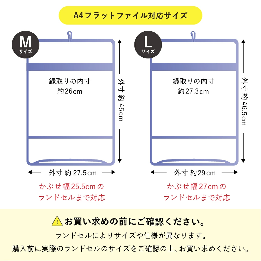 - ランドセルのカラーを見せつつ傷や汚れから守るランドセルカバーです。
