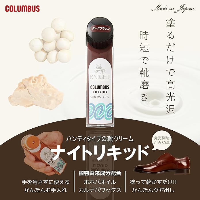 「ハンディータイプの液体靴クリームで、手を汚さずにお手入れができる靴磨き」をお探しなら、「コロンブス 靴クリーム」がオススメですね。