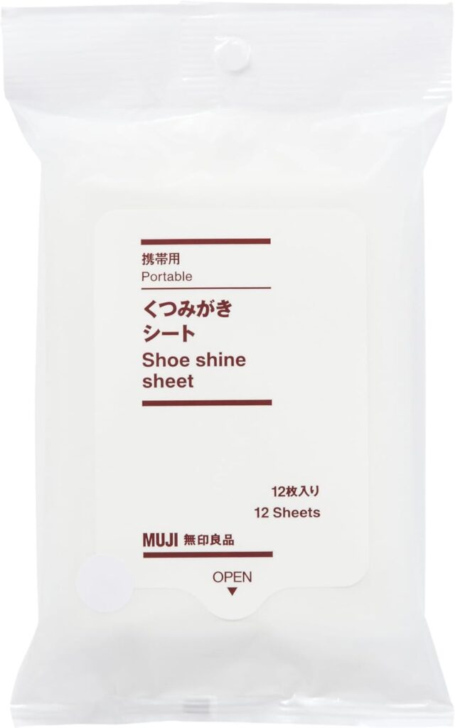 「1枚で1足分充分にみがける大判タイプの靴磨き」をお探しなら、「無印良品 携帯用くつみがきシート」がオススメですね。