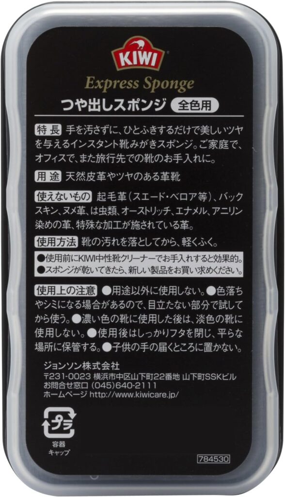 - 手を汚さずに美しいつやを出すインスタント靴磨きスポンジ です。