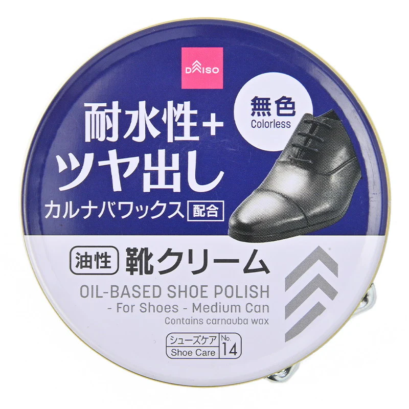 今回の靴磨きでは、ダイソーさんの新しい無色のワックスを使ってみました。カルナバワックス配合とかで、石油臭さが若干減った気がします。また、柔らかい印象を受けました。上級者は乾かすと思いますが、鏡面磨きは最近していないので、私はこのまま使おうと思います。#靴磨き https://t.co/Pf7GliuqEU pic.twitter.com/YXkATCbp2i