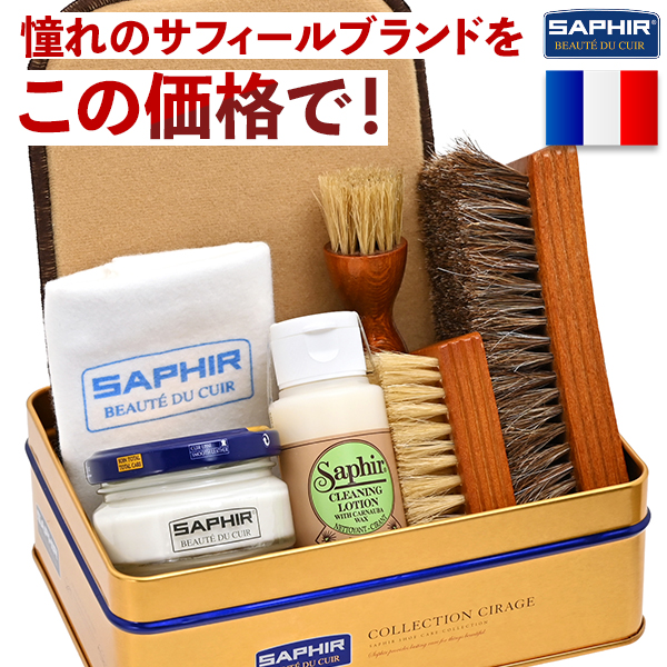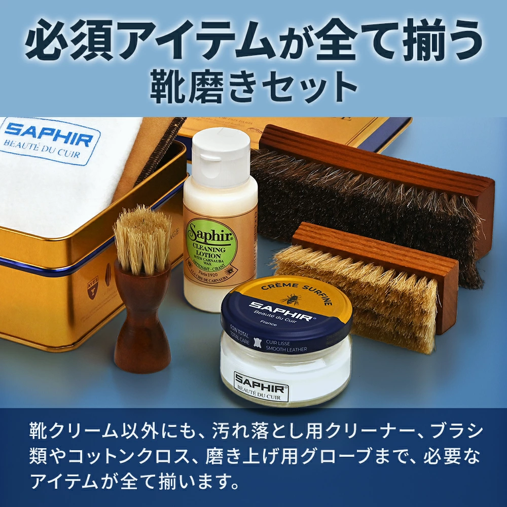 「靴みがきに必要なアイテムが一通り揃った、入門用に最適なセットの靴磨き」をお探しなら、「サフィール 靴磨きセット」がオススメですね。