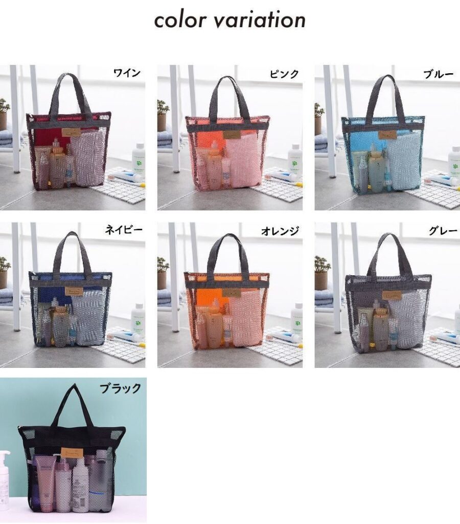 「通気性バツグンのメッシュ素材でお風呂やプール、ジムで大活躍」な商品をお探しなら、「Plus Nao メッシュバッグ」がオススメですね。