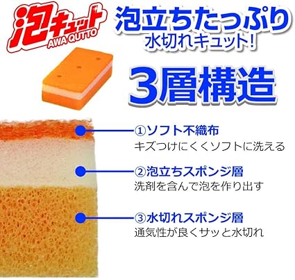 - 頑固な汚れ落としに便利なナイロン不織布、洗剤をしっかりキープするウレタン層、少量の洗剤でもたっぷり泡立ち。
