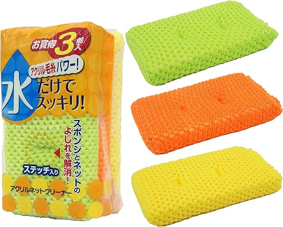 | 商品の特徴 | ネットタイプで泡立ちが良い。 水に浸けると厚みが復活するタイプ。 | ネットクリーナータイプでカラフル。 ひっかけ紐付きで7色展開。 | ハードスポンジタイプで汚れ落ち抜群。 研磨剤入り不織布付き。 |