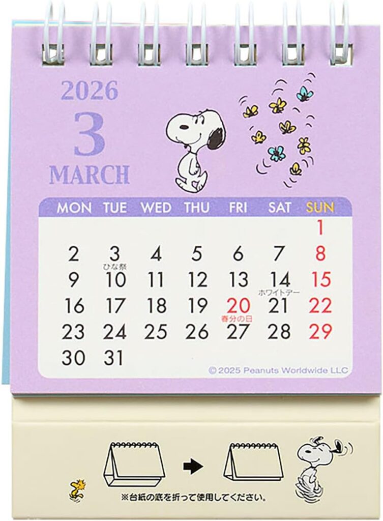 「プチサイズの卓上カレンダー」をお探しなら、「サンリオ(SANRIO) リングミニカレンダー 2026 スヌーピー」がオススメですね。