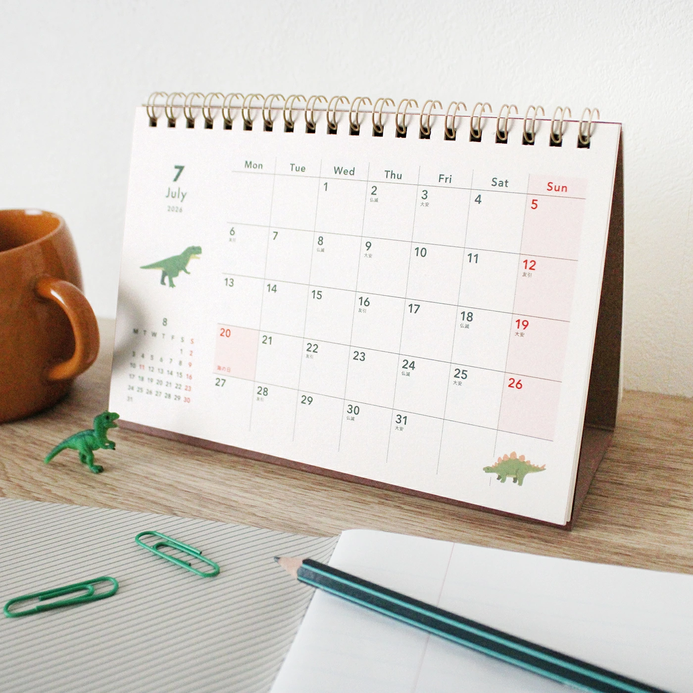 - 自立してくれるので、デスクでは卓上カレンダーとしても活躍。