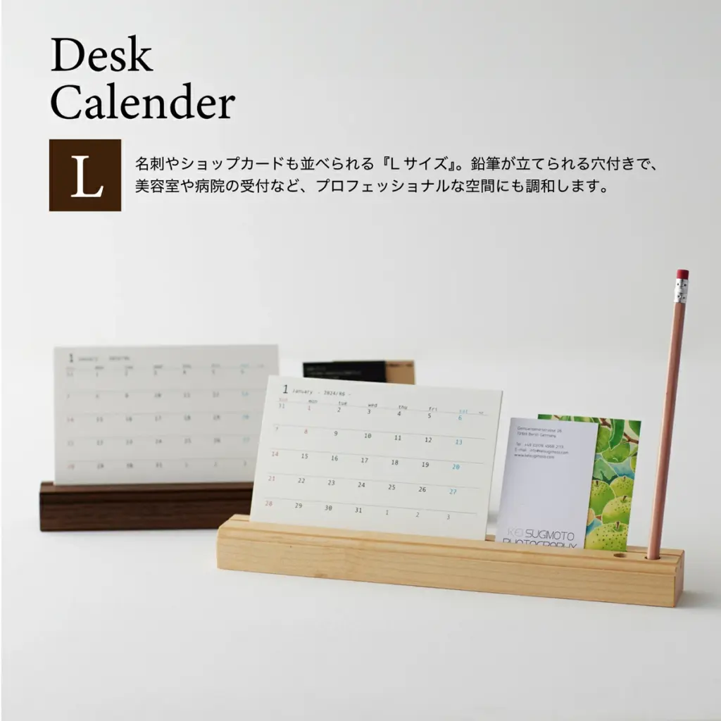 | 四国加工株式会社 木製スタンドとカレンダーのセット | ★4.75(142件) | ・スタンド:S=H26×W158×D35mm、L=H26×W280×D35mm・カレンダー:ハガキサイズ(100×148mm) | ・本物の木の温かみ・名入れ可能でギフト向き・スタンドは一生もの・交換用レフィルあり | 楽天市場約2,000〜3,500円前後(仕様により変動)送料:無料 |
