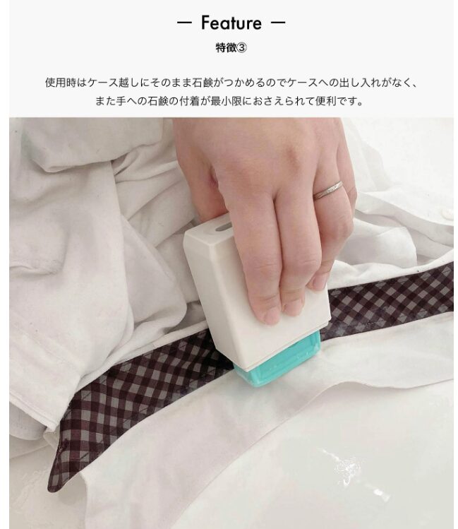 ケースをパカッと開いて石けんをセット!そのまま直接衣類に塗ることが出来ます✌