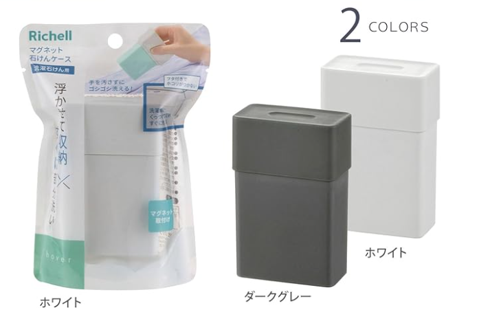| リッチェル ホバーマグネット石けんケース | ★4.3(15件) | 6.8×3.8×10.3 cm | マグネット式で洗濯機側面等に取り付け可能/浮かせて収納できる | Amazon:1,100円(税込)/送料無料 |