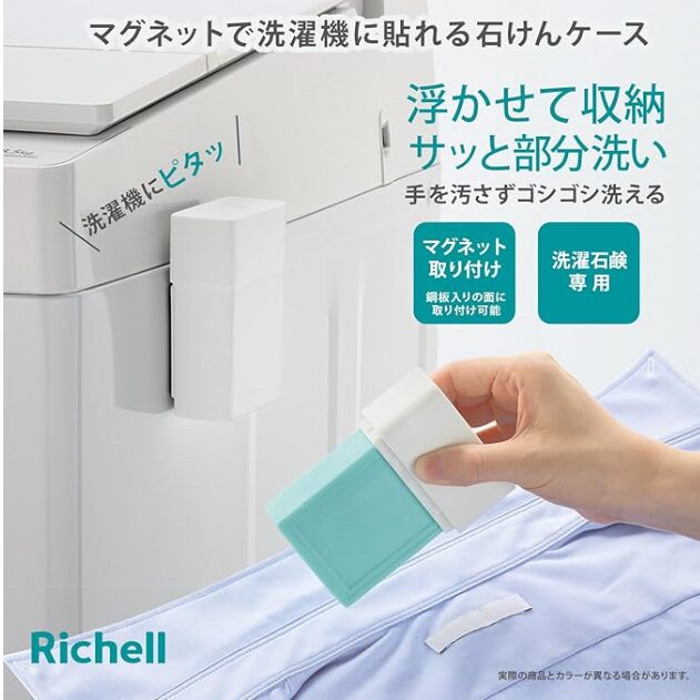 洗濯機の側面などに取り付けられるマグネット式をお探しなら、リッチェルのウタマロ石鹼ケースがオススメですね。