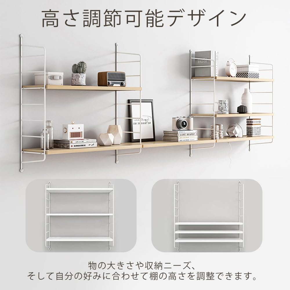 - 収納するアイテムのサイズや用途に応じて、棚の高さを自由に調整することが可能です。