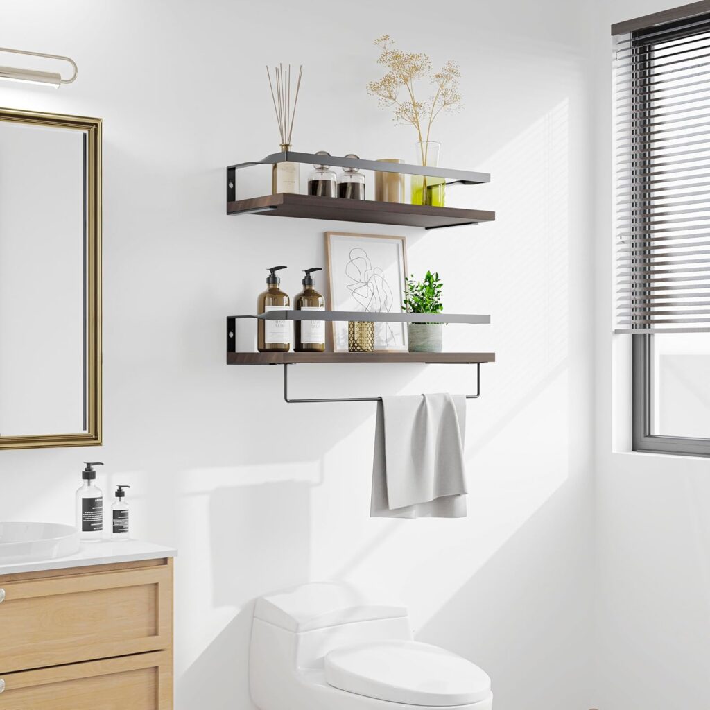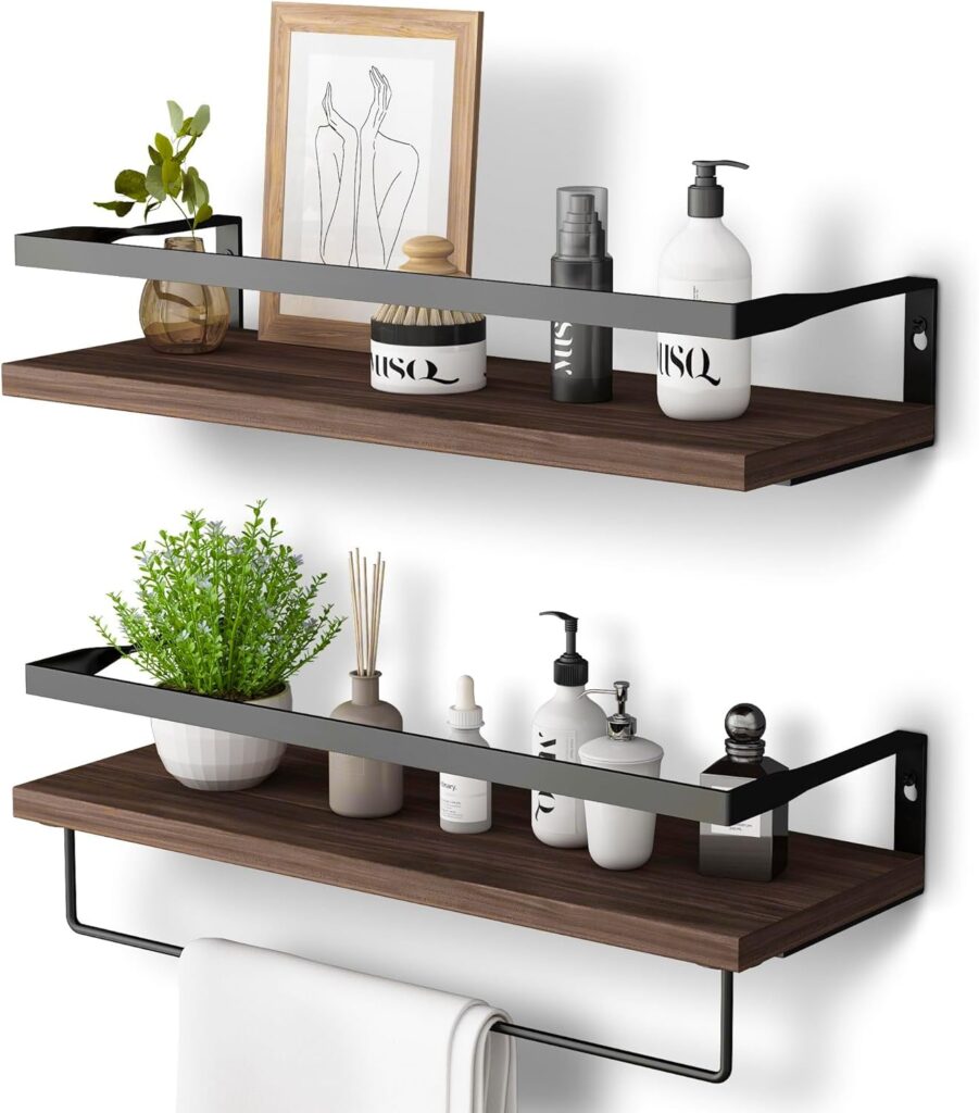 - 掛け棚は天然木と金属構造のデザインで、落下防止手すりとタオルバー付き、2点セットです。