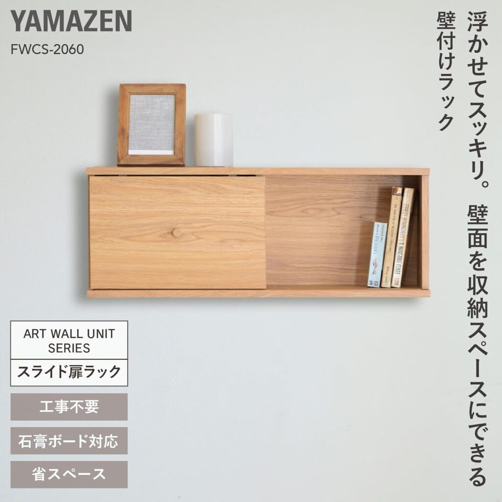 | 山善 ウォールシェルフ | ★4.1 | 奥行19.5×幅60×高さ22.5cm | ・スライド式扉付き ・専用ピンで石膏ボード取付可 ・耐荷重:全体7kg(天板3kg/棚板1枚あたり2kg) | Amazon | 3,847円 | 無料 |
