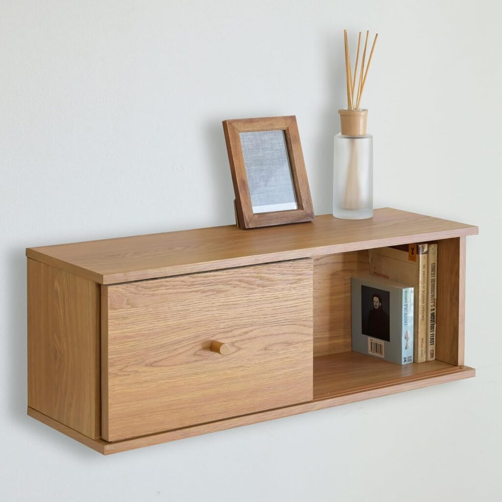 「スライド式の扉がついているので、一部目隠しもできるウォールシェルフ」をお探しなら、「山善 ウォールシェルフ」がオススメですね。